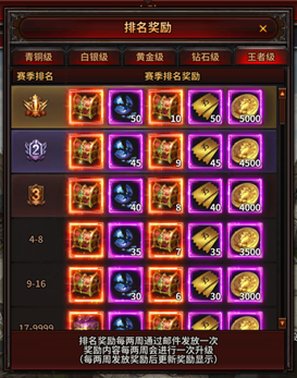 (7)圣殿争夺战还将根据军团赛季时间,每两周进行一次排名奖励结算,并且排名奖励每两周将会进行一次升级!排名越高,奖励越丰厚!