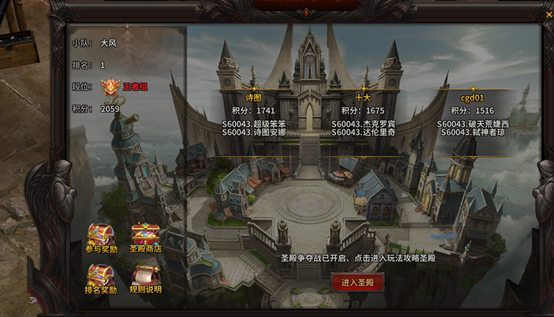 (2)圣殿争夺战将会根据小队战力划分为王者、钻石、黄金、白银、黑铁五个段位,段位越高奖励越高