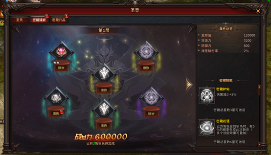 (2)同时完成多个密藏的镶嵌,可激活强大的密藏技能加持!
