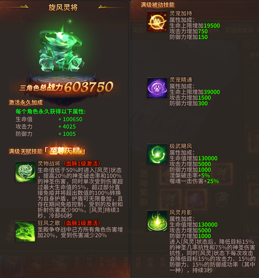 4、每次活动将根据各军团的最终积分进行排名,为参与的玩家发放参与奖励及矿石分红,矿石分红累积后可领取矿石赛季奖励,可获得专属宠物——旋风灵将!