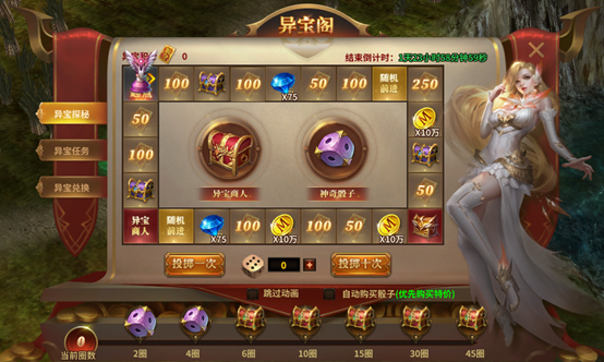 除了使用异宝骰子,玩家还可以使用神奇骰子来选择移动指定点数,想去哪就去哪!当棋子在棋盘上移动达到指定圈数时,还可以领取圈数奖励