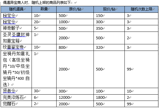 偶遇异宝商人,在异宝商店中限时上架一件新的商品;