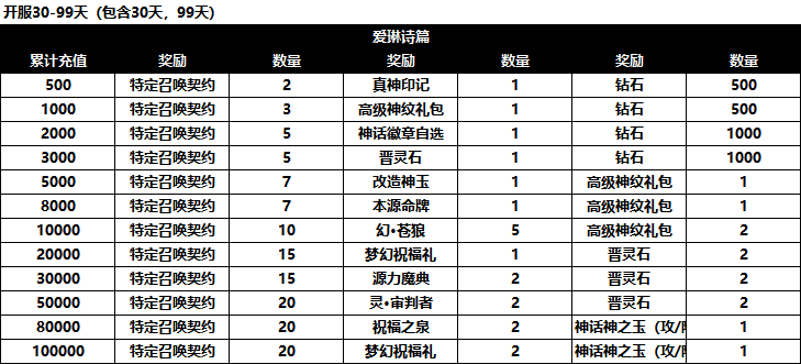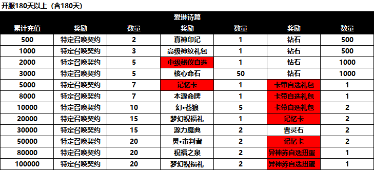 3.活动为累充形式,档位奖励向下兼容(如活动期间累充10000元,则可领取500-10000档位的所有奖励)。