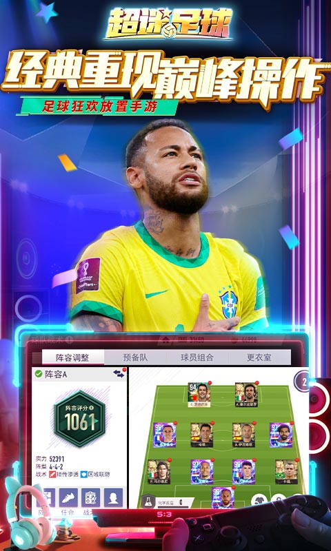 在现实世界,你是足球的忠实信徒,为每一场球赛心潮澎湃;在《超迷足球》里,你将成为足球世界的主宰,掌控全局,铸就辉煌!在这里,你能签下梦寐以求的巨星,雕琢璞玉般的潜力新星,组建专属于你的梦幻球队。