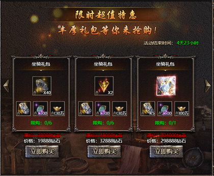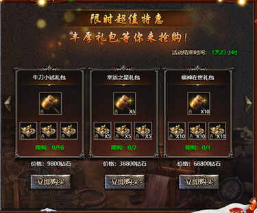 活动说明:活动期间将上架各种骨折特惠礼包供玩家购买。