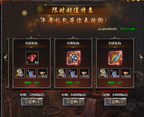 活动说明:活动期间将上架各种骨折特惠礼包供玩家购买。