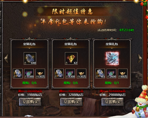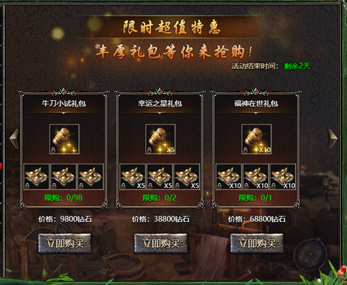 活动说明:活动期间将上架各种骨折特惠礼包供玩家购买。