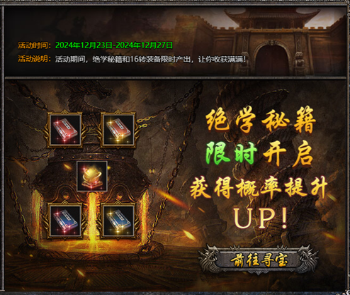 活动说明:活动期间探宝几率提升,图腾装备获得概率提升。