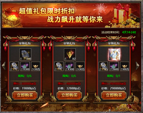 活动说明:活动期间将上架各种骨折特惠礼包供玩家购买。