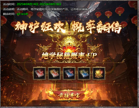 活动说明:活动期间探宝几率提升,终极技能获得概率提升。