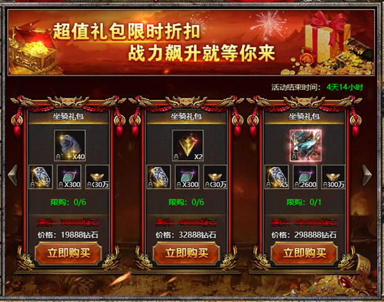 活动说明:活动期间将上架各种骨折特惠礼包供玩家购买。