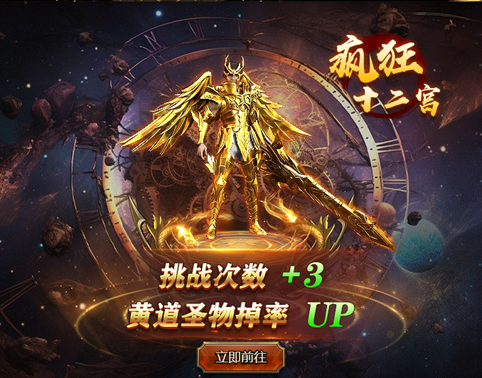 活动说明:活动期间黄道十二宫挑战次数+3,圣物掉落概率UP。