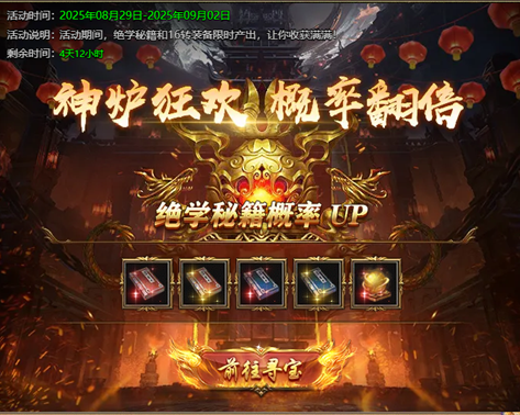 活动说明:活动期间探宝几率提升,奥义技能获得概率提升。