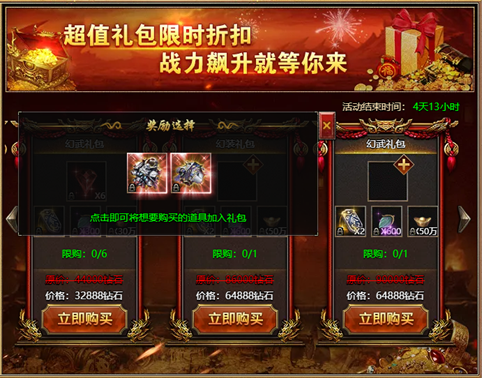活动说明:活动期间玩家可优惠购买道具,还将获得额外超值奖励。