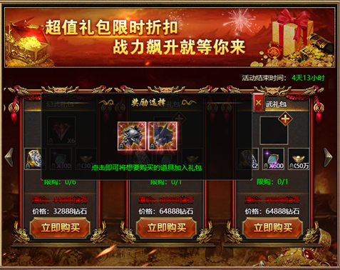 活动说明:活动期间玩家可优惠购买道具,还将获得额外超值奖励。