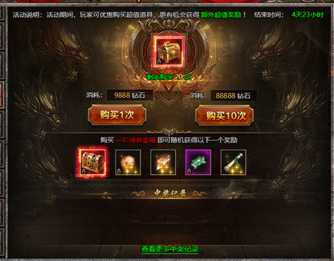 活动说明:活动期间玩家可优惠购买道具,还将获得额外超值奖励。