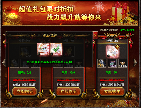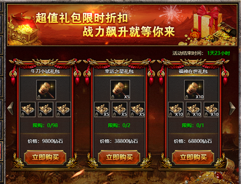 活动说明:活动期间将上架各种骨折特惠礼包供玩家购买。