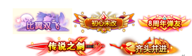 3、新增称号卡:比翼双飞、初心未改、8周年弹友、传说之剑、齐头并进;
