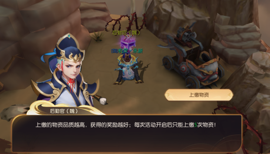 完成后去自己阵营的后勤官处上缴物资,玩家每天仅可提交五次物资