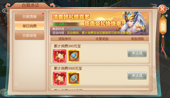 注:合服活动,只有在合服后的充值与消费才生效。合服前的充值与消费不计算在合服活动内。