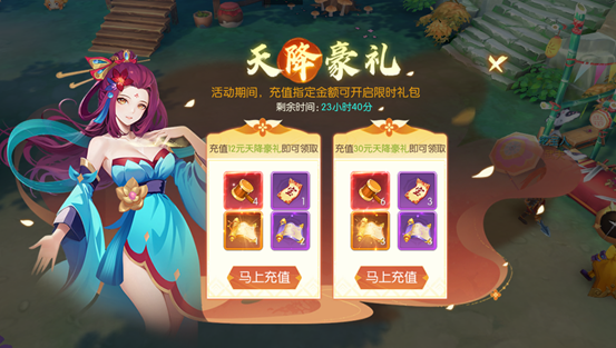 活动期间,充值指定金额可开启限时礼包。