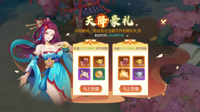 活动期间,充值指定金额可开启限时礼包。