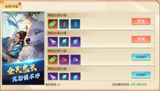 活动内容:活动时间内达到对应等级可以领取奖励。