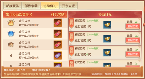 活动内容:在活动期间统计协助成功次数,排名奖励活动结束以邮件得形式发放。