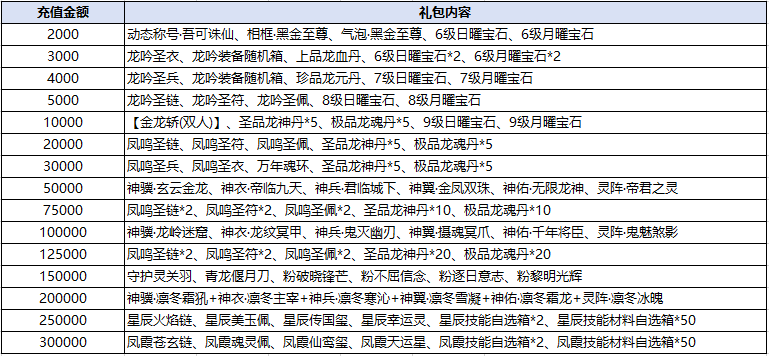 4、充值金额以单个角色金额为准