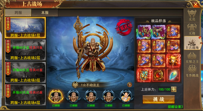 --击杀boss会扣除一定上古体力,体力每日0点重置