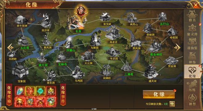 --每日默认2次,化缘中会触发随机事件,完成事件可获得奖励,不同处理奖励有差异