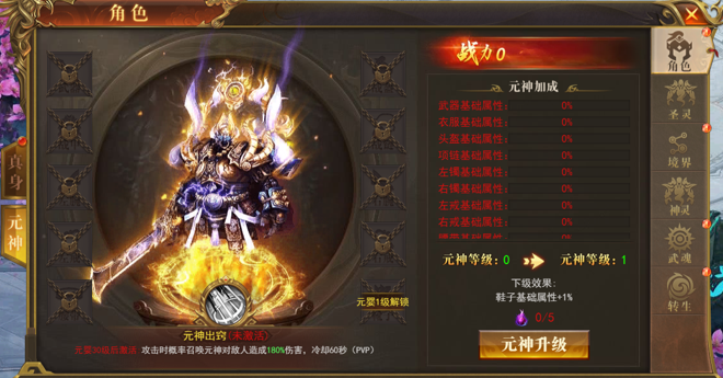 --元神30级可激活元神出窍效果,攻击时有概率召唤出元神对敌人造成超高伤害