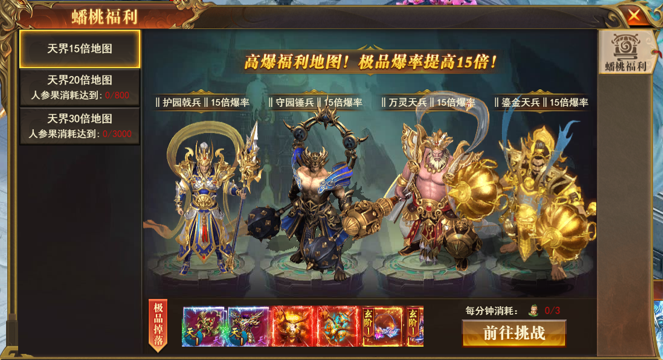 --地图分为15倍、20倍、30倍地图,消耗人生果达到一定数量可进入更高倍数地图