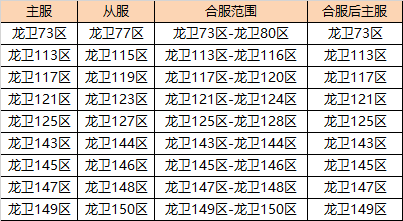 为保证服务器的运行稳定和服务质量,《龙卫传奇》部分区服将进行相关合服工作。预计合服时间为3月24日9:00-10:00。请各位玩家相互转告,并提前留意游戏时间,以免造成不必要的损失。合服结束后可通过原服务器入口进入游戏。对于合服期间给您带来的不便,敬请谅解,感谢所有玩家的支持和配合。