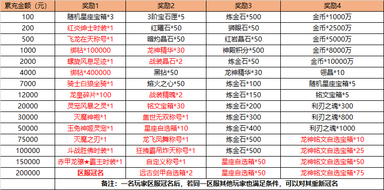 2.每档仅限领取一次,并且仅限累充达到的账号领取,不可转移到其他账号。