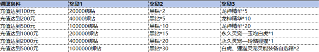 活动内容:活动期间内,限时累计充值达到指定档位,可领取对应档位奖励。