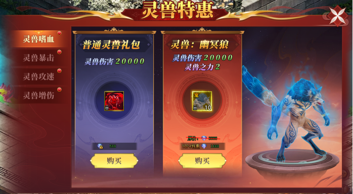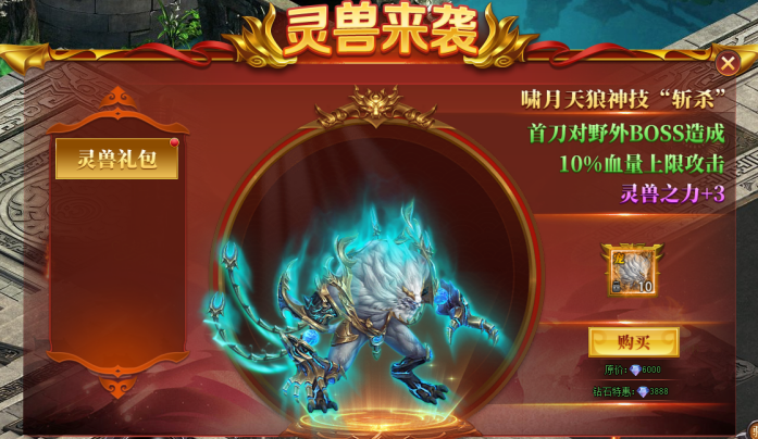 灵兽是前期升级打怪强力帮手,购买灵兽特惠礼包可快速提升灵兽输出能力