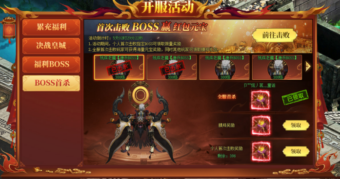 BOSS首杀(新服首日开启)