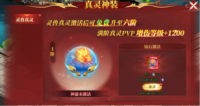 充值任意金额即可1钻石激活灵兽真灵神装