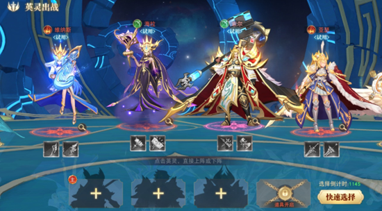 玩家可以挑选系统给出的各大强力英灵,数量取决于玩家当前英灵系统中已解锁的出战位(最多能选出4名英灵上场)。