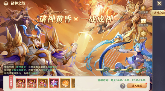 诸神之战为日常玩法。玩家可以在每天的16:00-16:30、22:30-23:00参与该活动。