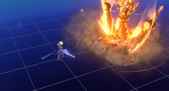 英勇打击:对扇形区域的3个目标造成3段共240%+5伤害和30%减速效果,持续2秒,如果目标为怪物,则目标数量增加至5个。