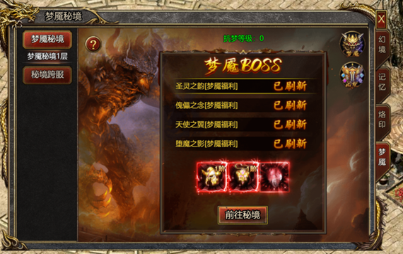 B.击杀梦魇BOSS可掉落梦魇装备,提升抗梦等级。抗梦等级越高,可进入的梦魇秘境层数越高,掉落奖励越好。