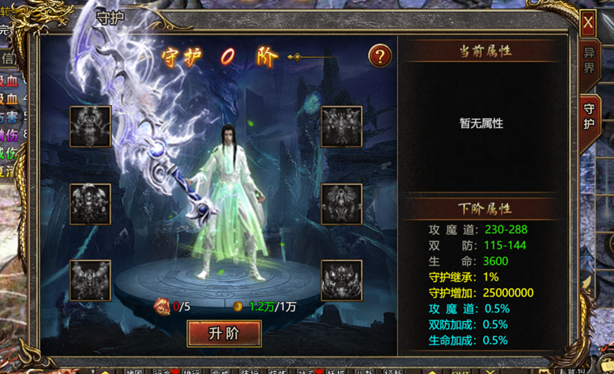 激活守护后,守护展示在玩家的血条下方,PVP战斗中受到伤害时,一定比例的伤害将优先由守护承担。