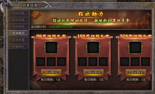 狂欢币不够用,狂欢助力来帮忙,购买礼包可获得海量狂欢币