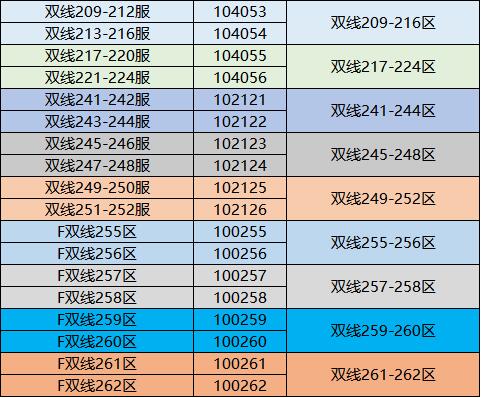 本次将对以下相同颜色的区服进行合服:
