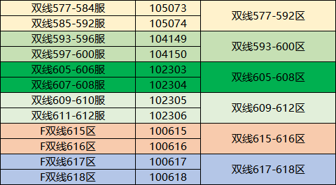 本次将对以下相同颜色的区服进行合服: