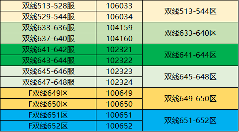 本次将对以下相同颜色的区服进行合服:
