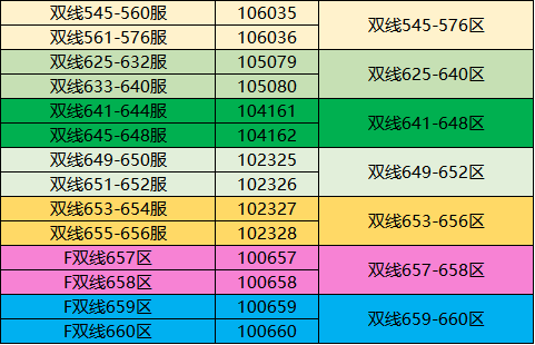 本次将对以下相同颜色的区服进行合服: