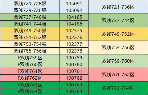 本次将对以下相同颜色的区服进行合服: